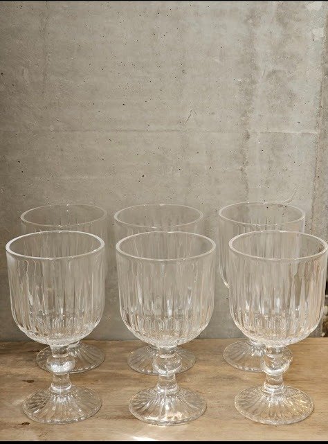 Copas de vidrio labradas rayadas ,vienen x 6 unidades