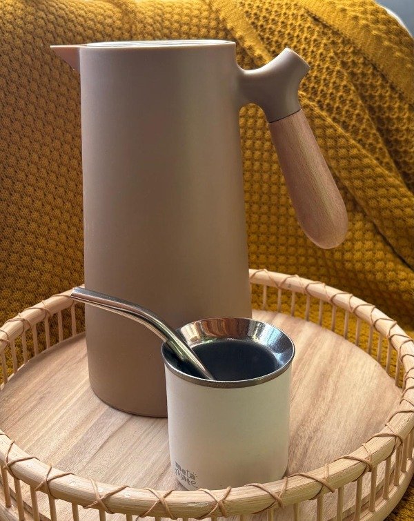 Jarra Térmica con mango de Bambú con sistema vertedor. Ideal para agua Caliente o Café