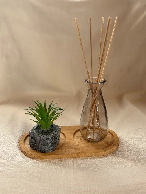 bandeja chica de Bambú con 2 divisiones para apoyar.